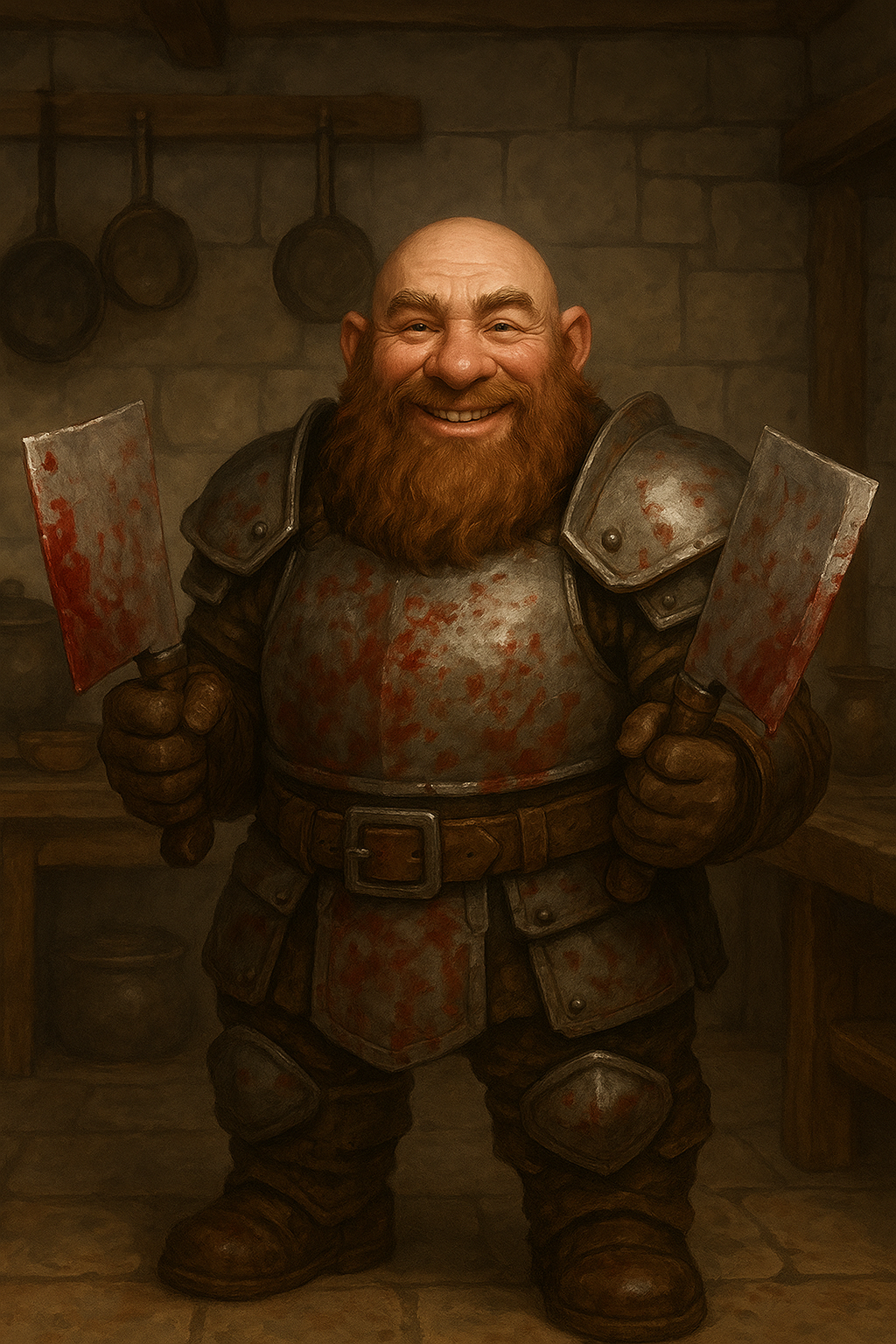 - Mountain Dwarf combattant avec deux hachoirs de boucher